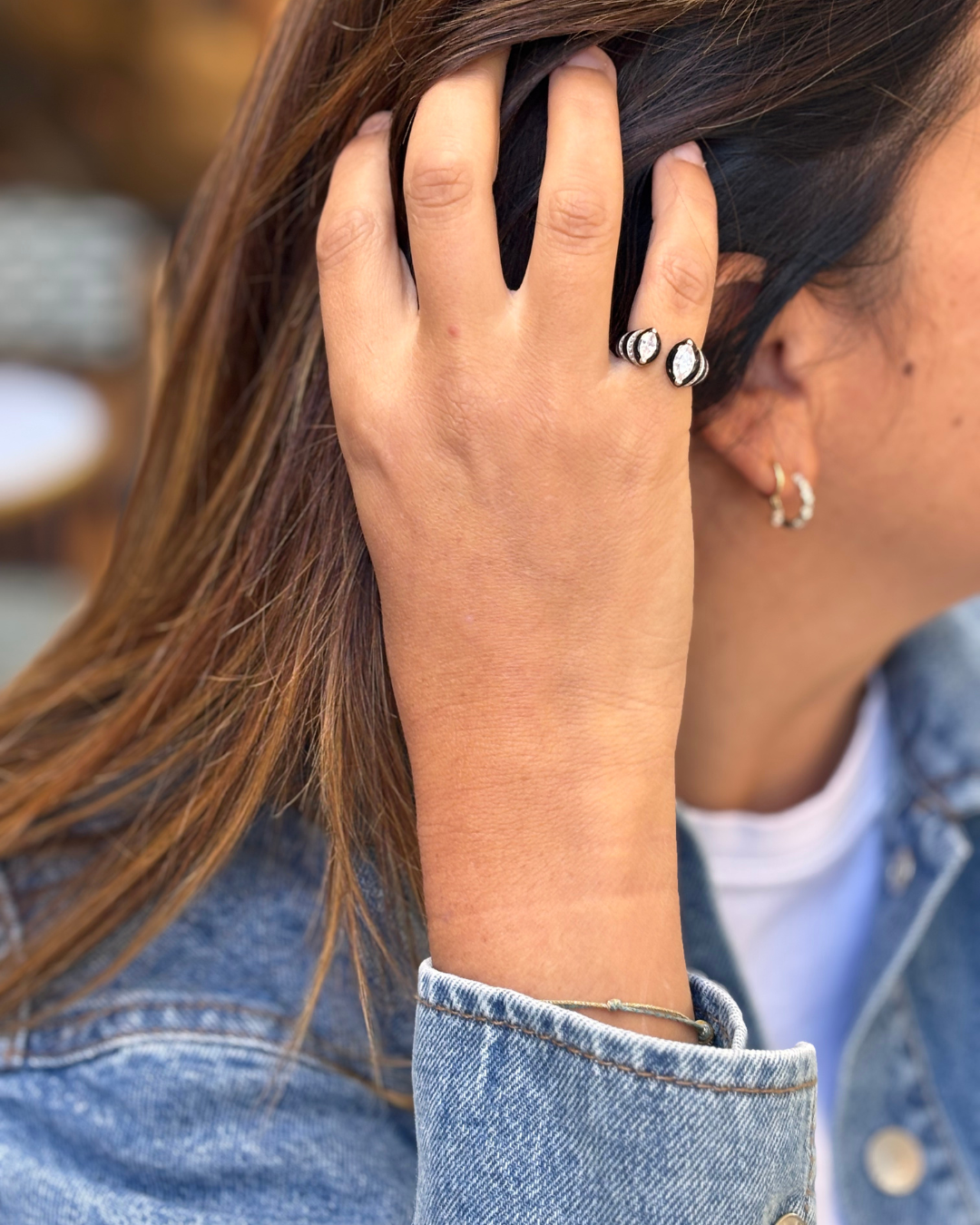 BLAKE, c’est la chevalière qui mixe éclat et caractère. Sa pierre marquise en zirconium brille avec intensité, tandis que ses détails en émail noir lui donnent une vibe résolument art déco. Audacieuse et stylée, elle se porte aussi bien au quotidien que pour upgrader un look du soir.