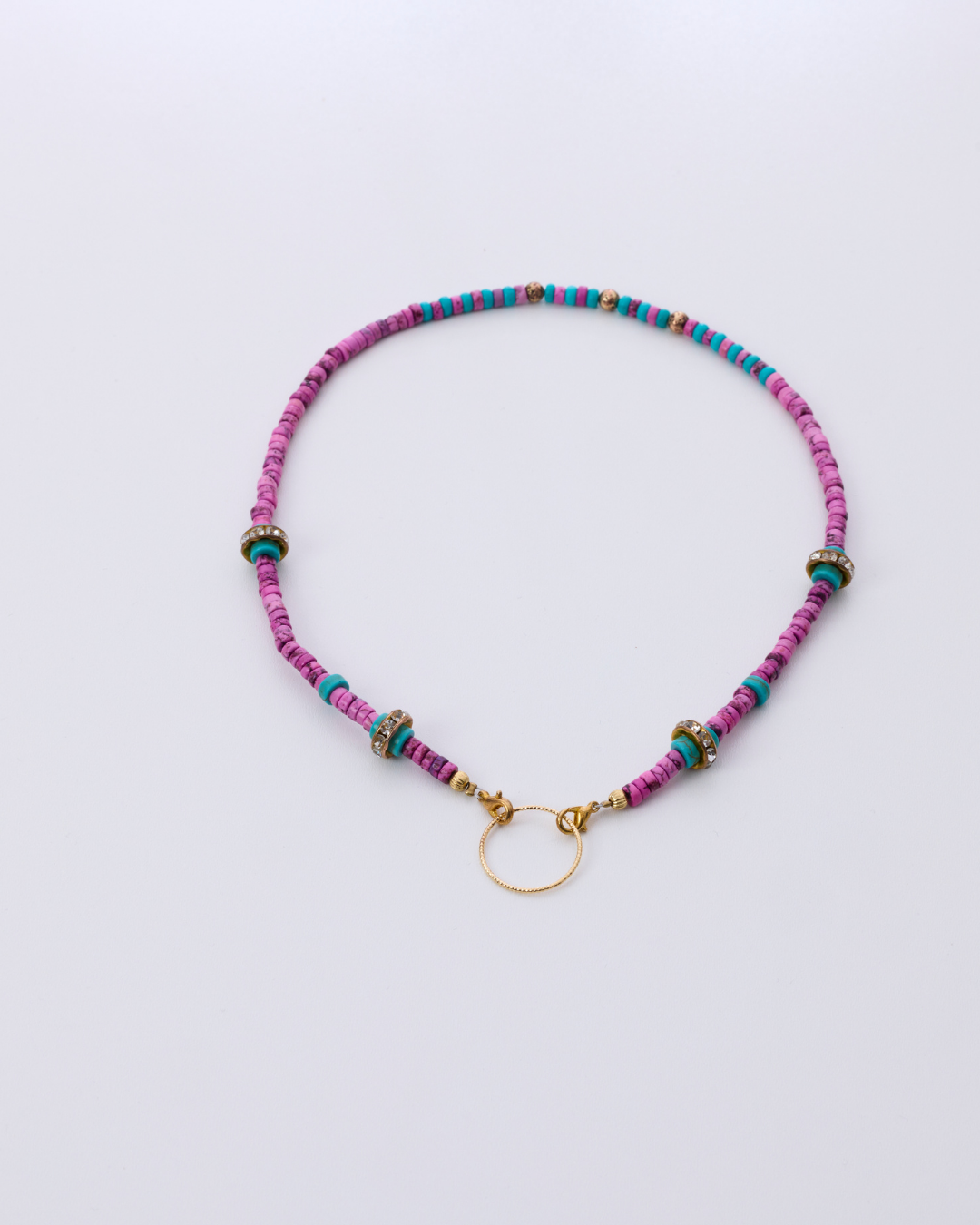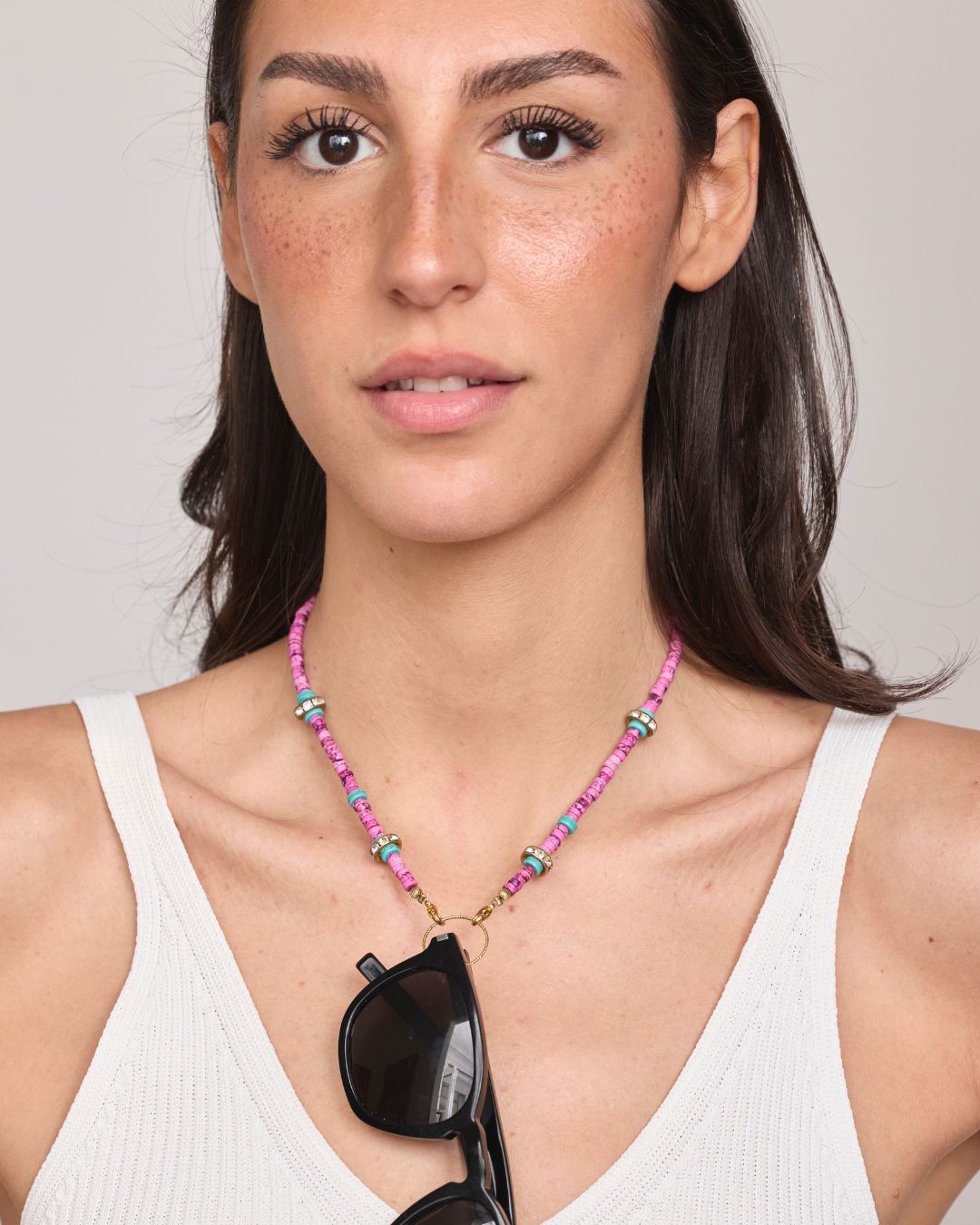 Audacieux et coloré, ce collier en perles plates multicolores apporte une touche vibrante à toutes vos tenues. Ses nuances de rose, turquoise et doré créent un esprit estival et moderne, parfait pour celles qui aiment associer style et originalité. À l’avant, un anneau doré discret vous permet d’y accrocher vos lunettes de vue ou de soleil, afin de les garder toujours à portée de main avec élégance. Conçu à la fois comme un bijou tendance et un accessoire pratique, il deviendra vite un indispensable de votre quotidien. Chaque collier est livré avec deux anneaux de tailles différentes pour s’adapter à toutes les montures.