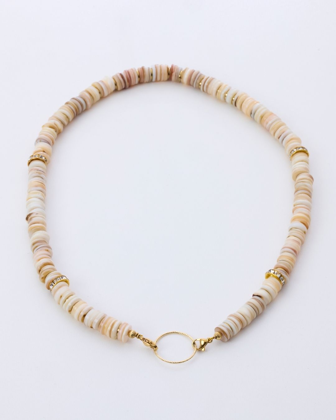 Ce collier au style Art Déco mêle des perles naturelles et strassé, pour un bijou à la fois raffiné et pratique. Son anneau central discret permet d’y glisser vos lunettes avec style, tout en conservant l’esthétique d’un collier graphique et féminin. Chaque collier est livré avec deux anneaux de tailles différentes, pour s’adapter à toutes les montures