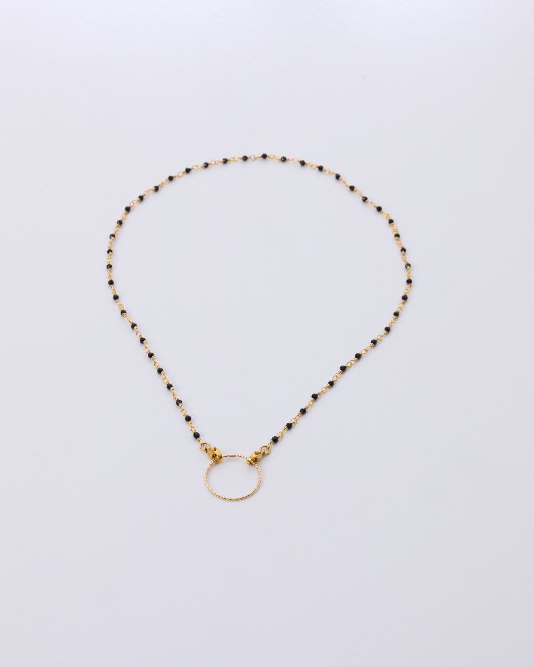Élégant et pratique, ce collier raffiné est orné de petites perles noires délicatement enchaînées. Son anneau discret au centre permet d’accrocher vos lunettes de vue ou de soleil avec style, pour ne plus jamais les perdre ni les poser au hasard. Chaque collier est livré avec deux anneaux de tailles différentes pour s’adapter à toutes les montures.